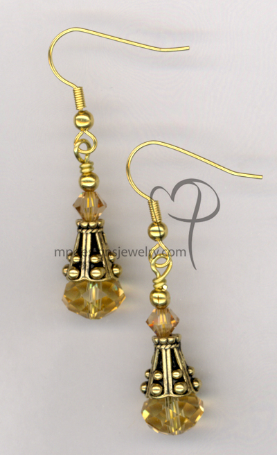 Antiqued gold cones surround this Amethyst purple faceted crystals beads and pale pink rose crystals for the perfect vintage style earrings. Renaissance Fair anyone?